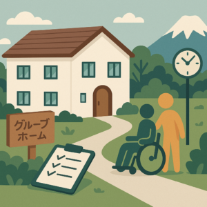 - 見学予約 – 連絡時は「グループホーム 見学」を希望する旨と、配慮事項(食事・服薬・通院など)を共有。必要に応じて「知的障害 グループホーム」か「精神障害 グループホーム」どちらを想定しているかを伝えるとスムーズです。